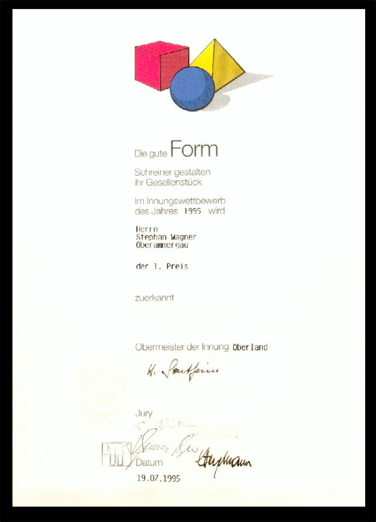 Innungsieger und 1 Platz “Die gute Form” 1995