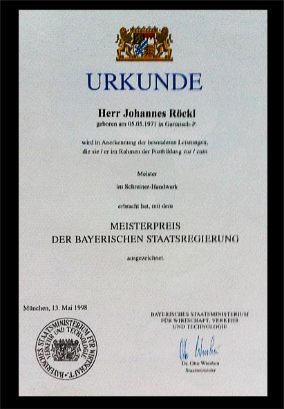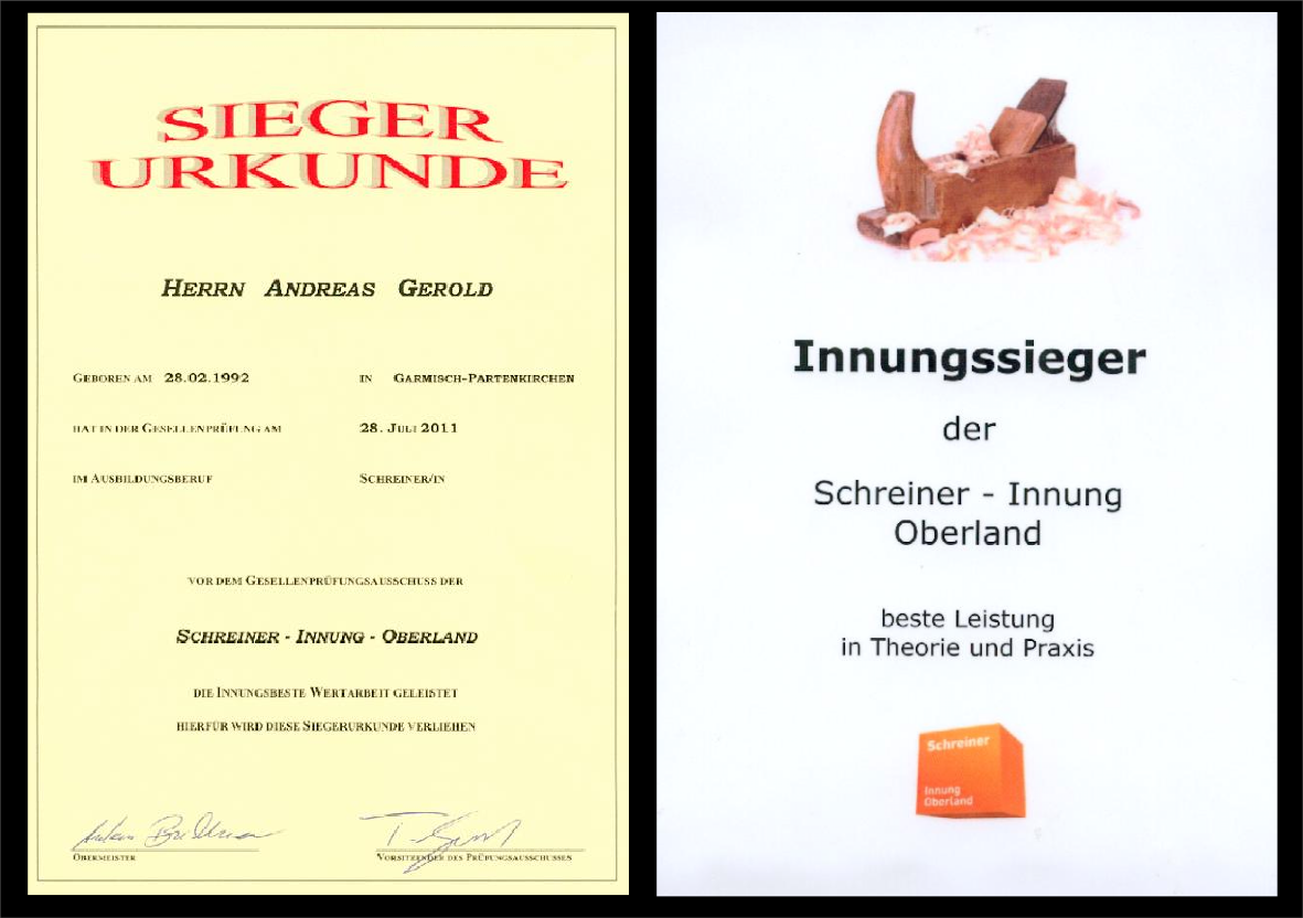 Oberland aus der Schreinerei Röckl. Andreas Gerold hat sich den Titel